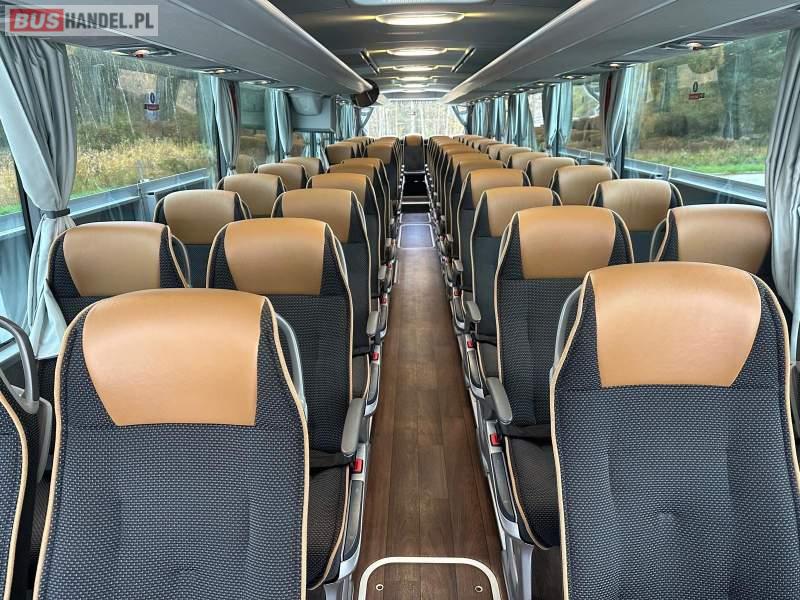 Wyposażenie: klimatyzacja, video, WC, lodówka, kabina sypialna, oświetlenie indywidualne, nawiewy dyszowe, fotele odchylane, podnóżki, stoliczki, siateczki, ABS, ASR, tempomat, retarder, telefon, nawigacja, CD, mikrofon, radio, fotele odchylane i rozsuwane, wyświetlacz matrix, sejf, regulacja wysokości nadwozia, centralny zamek, podwójne szyby boczne, wspomaganie kierownicy, aluminiowe felgi, elektryczne lusterka, ogrzewanie stacjonarne, DVD, hak holowniczy, ESP