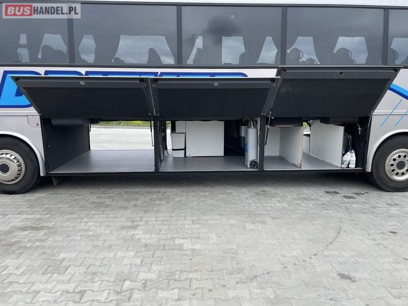 Wyposażenie: video, WC, lodówka, caffebar, kabina sypialna, fotele odchylane, oświetlenie indywidualne, nawiewy dyszowe, siateczki, ABS, ASR, tempomat, retarder, telefon, nawigacja, CD, podnóżki, stoliczki, mikrofon, klimatyzacja, radio, wyświetlacz matrix, sejf, regulacja wysokości nadwozia, centralny zamek, podwójne szyby boczne, wspomaganie kierownicy, elektryczne lusterka, fotele odchylane i rozsuwane, DVD, ogrzewanie stacjonarne, hak holowniczy, ESP