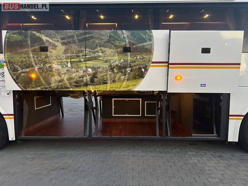 Wyposażenie: klimatyzacja, WC, lodówka, caffebar, kabina sypialna, oświetlenie indywidualne, nawiewy dyszowe, fotele odchylane, podnóżki, stoliczki, siateczki, ABS, ASR, tempomat, retarder, telefon, nawigacja, CD, mikrofon, radio, fotele odchylane i rozsuwane, wyświetlacz matrix, sejf, regulacja wysokości nadwozia, centralny zamek, podwójne szyby boczne, wspomaganie kierownicy, elektryczne lusterka, ogrzewanie stacjonarne, DVD, hak holowniczy, ESP