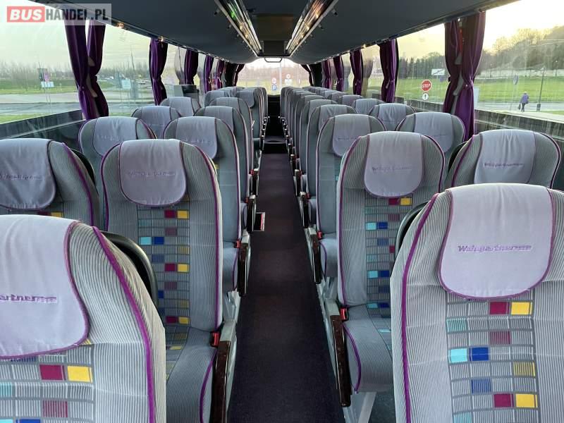 Wyposażenie: video, WC, lodówka, caffebar, kabina sypialna, fotele odchylane, oświetlenie indywidualne, nawiewy dyszowe, siateczki, ABS, ASR, tempomat, retarder, telefon, nawigacja, CD, podnóżki, stoliczki, mikrofon, klimatyzacja, radio, kuchenka mikrofalowa, wyświetlacz matrix, sejf, regulacja wysokości nadwozia, centralny zamek, podwójne szyby boczne, wspomaganie kierownicy, elektryczne lusterka, aluminiowe felgi, fotele odchylane i rozsuwane, DVD, ogrzewanie stacjonarne, hak holowniczy