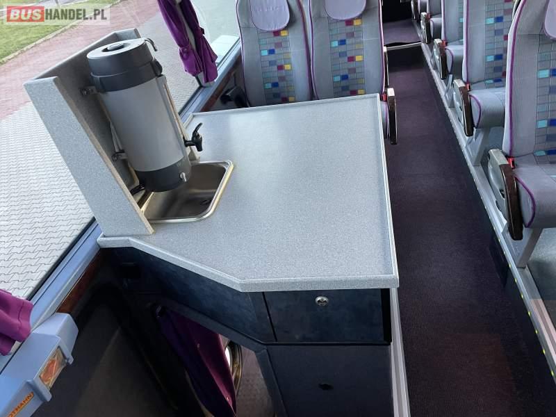 Wyposażenie: video, WC, lodówka, caffebar, kabina sypialna, fotele odchylane, oświetlenie indywidualne, nawiewy dyszowe, siateczki, ABS, ASR, tempomat, retarder, telefon, nawigacja, CD, podnóżki, stoliczki, mikrofon, klimatyzacja, radio, kuchenka mikrofalowa, wyświetlacz matrix, sejf, regulacja wysokości nadwozia, centralny zamek, podwójne szyby boczne, wspomaganie kierownicy, elektryczne lusterka, aluminiowe felgi, fotele odchylane i rozsuwane, DVD, ogrzewanie stacjonarne, hak holowniczy