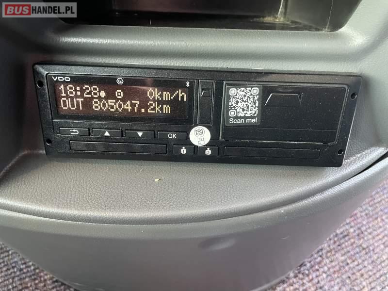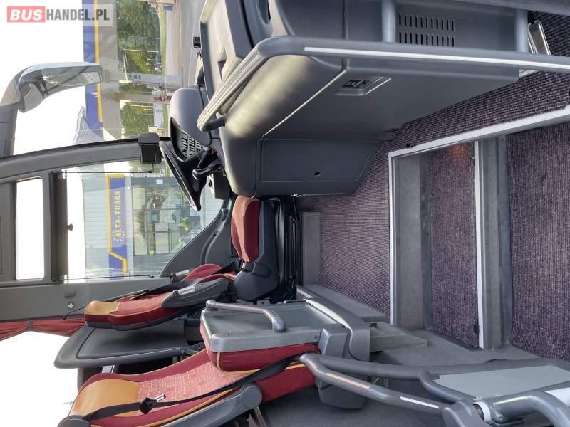Wyposażenie: klimatyzacja, WC, lodówka, caffebar, kabina sypialna, oświetlenie indywidualne, nawiewy dyszowe, fotele odchylane, podnóżki, stoliczki, siateczki, ABS, ASR, tempomat, retarder, telefon, nawigacja, CD, mikrofon, radio, fotele odchylane i rozsuwane, wyświetlacz matrix, sejf, regulacja wysokości nadwozia, centralny zamek, podwójne szyby boczne, wspomaganie kierownicy, elektryczne lusterka, ogrzewanie stacjonarne, DVD, hak holowniczy, ESP