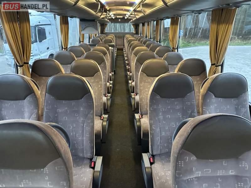 Wyposażenie: klimatyzacja, WC, lodówka, caffebar, kabina sypialna, oświetlenie indywidualne, nawiewy dyszowe, fotele odchylane, podnóżki, stoliczki, siateczki, ABS, ASR, tempomat, retarder, telefon, CD, mikrofon, radio, fotele odchylane i rozsuwane, wyświetlacz matrix, sejf, regulacja wysokości nadwozia, centralny zamek, podwójne szyby boczne, wspomaganie kierownicy, elektryczne lusterka, ogrzewanie stacjonarne, DVD, hak holowniczy, ESP