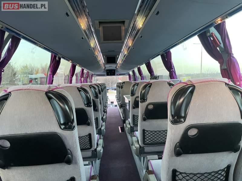 Wyposażenie: video, WC, lodówka, caffebar, kabina sypialna, fotele odchylane, oświetlenie indywidualne, nawiewy dyszowe, siateczki, ABS, ASR, tempomat, retarder, telefon, nawigacja, CD, podnóżki, stoliczki, mikrofon, klimatyzacja, radio, kuchenka mikrofalowa, wyświetlacz matrix, sejf, regulacja wysokości nadwozia, centralny zamek, podwójne szyby boczne, wspomaganie kierownicy, elektryczne lusterka, aluminiowe felgi, fotele odchylane i rozsuwane, DVD, ogrzewanie stacjonarne, hak holowniczy