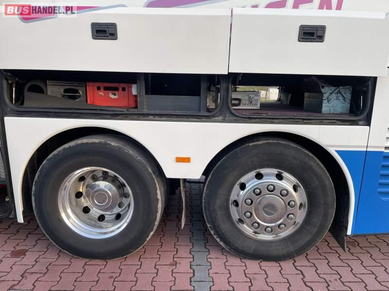 Wyposażenie: video, WC, lodówka, caffebar, kabina sypialna, fotele odchylane, oświetlenie indywidualne, nawiewy dyszowe, siateczki, ABS, ASR, tempomat, retarder, telefon, nawigacja, CD, podnóżki, stoliczki, mikrofon, klimatyzacja, radio, kuchenka mikrofalowa, wyświetlacz matrix, sejf, regulacja wysokości nadwozia, centralny zamek, podwójne szyby boczne, wspomaganie kierownicy, elektryczne lusterka, aluminiowe felgi, fotele odchylane i rozsuwane, DVD, ogrzewanie stacjonarne, hak holowniczy
