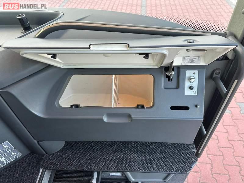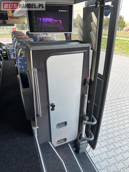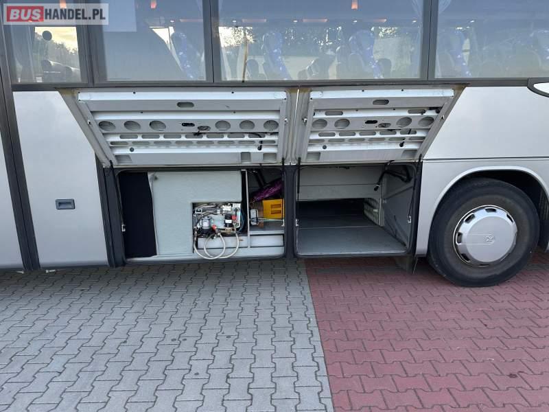 Wyposażenie: WC, lodówka, fotele odchylane, oświetlenie indywidualne, nawiewy dyszowe, siateczki, ABS, ASR, tempomat, retarder, nawigacja, CD, podnóżki, stoliczki, mikrofon, klimatyzacja, radio, wyświetlacz matrix, rampa dla inwalidów, sejf, regulacja wysokości nadwozia, centralny zamek, podwójne szyby boczne, wspomaganie kierownicy, elektryczne lusterka, aluminiowe felgi, fotele odchylane i rozsuwane, DVD, ogrzewanie stacjonarne, ESP