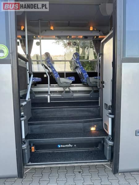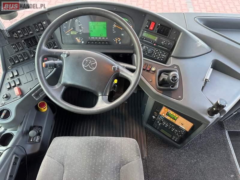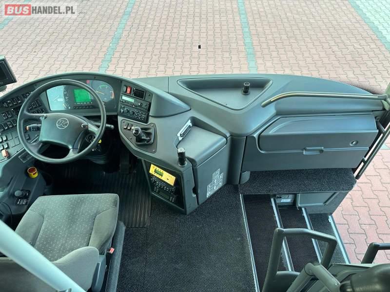 Wyposażenie: WC, lodówka, fotele odchylane, oświetlenie indywidualne, nawiewy dyszowe, siateczki, ABS, ASR, tempomat, retarder, nawigacja, CD, podnóżki, stoliczki, mikrofon, klimatyzacja, radio, wyświetlacz matrix, rampa dla inwalidów, sejf, regulacja wysokości nadwozia, centralny zamek, podwójne szyby boczne, wspomaganie kierownicy, elektryczne lusterka, aluminiowe felgi, fotele odchylane i rozsuwane, DVD, ogrzewanie stacjonarne, ESP
