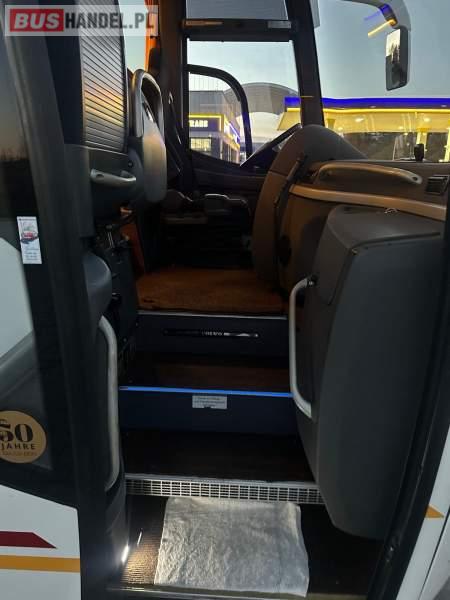 Wyposażenie: klimatyzacja, WC, lodówka, caffebar, kabina sypialna, oświetlenie indywidualne, nawiewy dyszowe, fotele odchylane, podnóżki, stoliczki, siateczki, ABS, ASR, tempomat, retarder, telefon, nawigacja, CD, mikrofon, radio, fotele odchylane i rozsuwane, wyświetlacz matrix, sejf, regulacja wysokości nadwozia, centralny zamek, podwójne szyby boczne, wspomaganie kierownicy, elektryczne lusterka, ogrzewanie stacjonarne, DVD, hak holowniczy, ESP
