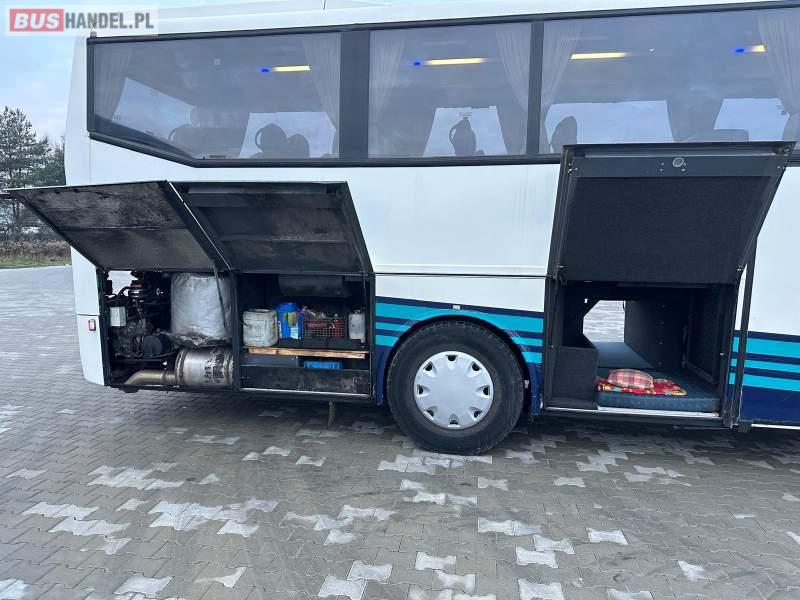 Wyposażenie: klimatyzacja, WC, lodówka, caffebar, kabina sypialna, oświetlenie indywidualne, nawiewy dyszowe, fotele odchylane, podnóżki, stoliczki, siateczki, ABS, ASR, tempomat, retarder, telefon, CD, mikrofon, radio, fotele odchylane i rozsuwane, wyświetlacz matrix, sejf, regulacja wysokości nadwozia, centralny zamek, podwójne szyby boczne, wspomaganie kierownicy, elektryczne lusterka, ogrzewanie stacjonarne, DVD, hak holowniczy, ESP