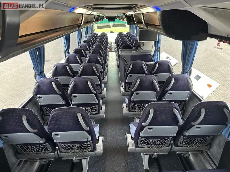 Wyposażenie: klimatyzacja, video, WC, lodówka, caffebar, kabina sypialna, oświetlenie indywidualne, nawiewy dyszowe, fotele odchylane, podnóżki, stoliczki, siateczki, ABS, ASR, tempomat, retarder, telefon, nawigacja, CD, mikrofon, radio, fotele odchylane i rozsuwane, wyświetlacz matrix, rampa dla inwalidów, sejf, regulacja wysokości nadwozia, centralny zamek, podwójne szyby boczne, wspomaganie kierownicy, elektryczne lusterka, ogrzewanie stacjonarne, DVD, hak holowniczy, ESP