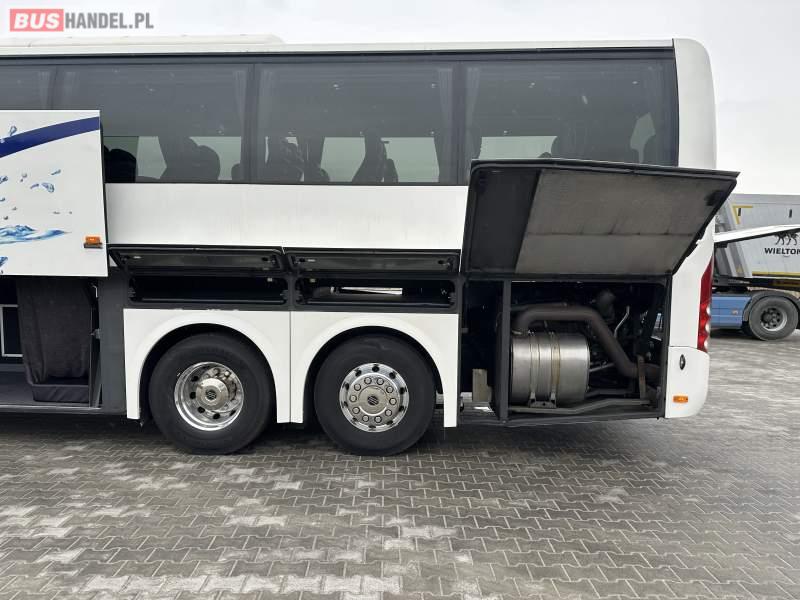 Wyposażenie: video, WC, lodówka, caffebar, kabina sypialna, fotele odchylane, oświetlenie indywidualne, nawiewy dyszowe, siateczki, ABS, ASR, tempomat, retarder, telefon, nawigacja, CD, podnóżki, stoliczki, mikrofon, klimatyzacja, radio, kuchenka mikrofalowa, wyświetlacz matrix, sejf, regulacja wysokości nadwozia, centralny zamek, podwójne szyby boczne, wspomaganie kierownicy, elektryczne lusterka, aluminiowe felgi, fotele odchylane i rozsuwane, DVD, ogrzewanie stacjonarne, hak holowniczy, ESP