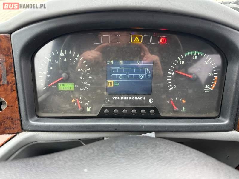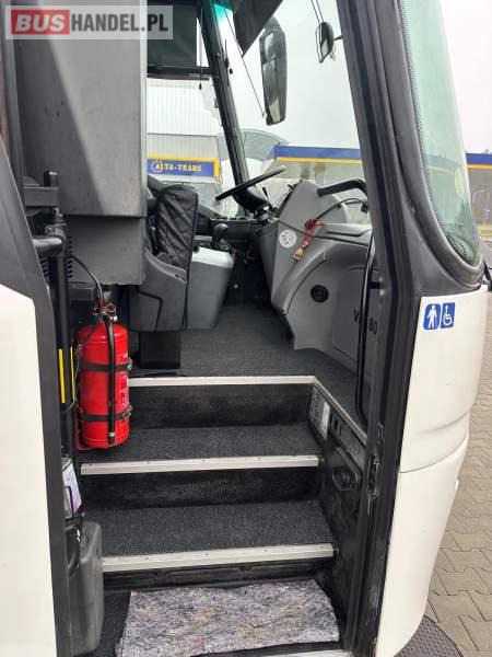 Wyposażenie: klimatyzacja, video, WC, lodówka, caffebar, kabina sypialna, oświetlenie indywidualne, nawiewy dyszowe, fotele odchylane, podnóżki, stoliczki, siateczki, ABS, ASR, tempomat, retarder, telefon, nawigacja, CD, mikrofon, radio, fotele odchylane i rozsuwane, wyświetlacz matrix, rampa dla inwalidów, sejf, regulacja wysokości nadwozia, centralny zamek, podwójne szyby boczne, wspomaganie kierownicy, elektryczne lusterka, ogrzewanie stacjonarne, DVD, hak holowniczy, ESP