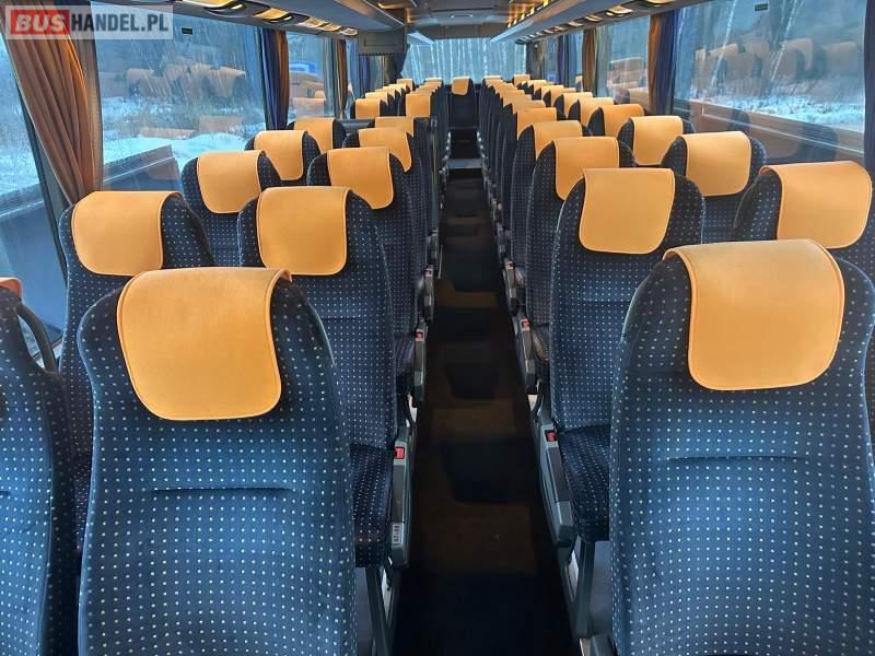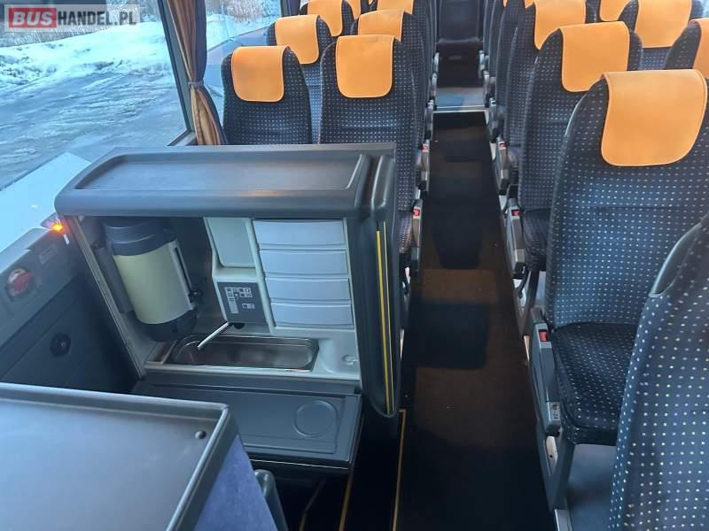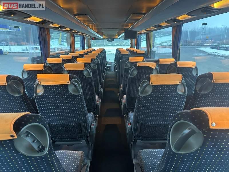 Wyposażenie: klimatyzacja, video, WC, lodówka, caffebar, kabina sypialna, oświetlenie indywidualne, nawiewy dyszowe, fotele odchylane, podnóżki, ABS, ASR, tempomat, retarder, telefon, nawigacja, CD, mikrofon, radio, fotele odchylane i rozsuwane, wyświetlacz matrix, sejf, regulacja wysokości nadwozia, centralny zamek, podwójne szyby boczne, wspomaganie kierownicy, elektryczne lusterka, ogrzewanie stacjonarne, DVD, hak holowniczy, ESP