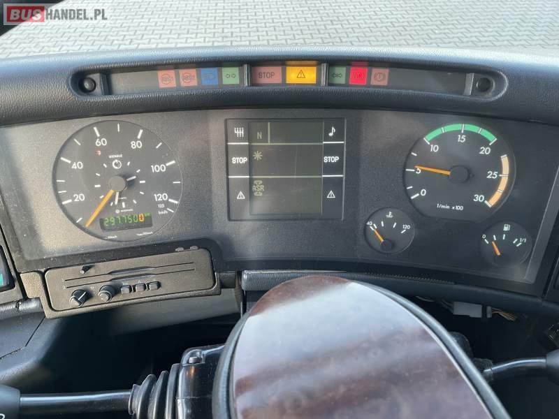 Wyposażenie: video, WC, lodówka, caffebar, kabina sypialna, fotele odchylane, oświetlenie indywidualne, nawiewy dyszowe, siateczki, ABS, ASR, tempomat, retarder, telefon, nawigacja, CD, podnóżki, stoliczki, mikrofon, klimatyzacja, radio, kuchenka mikrofalowa, wyświetlacz matrix, sejf, regulacja wysokości nadwozia, centralny zamek, podwójne szyby boczne, wspomaganie kierownicy, elektryczne lusterka, aluminiowe felgi, fotele odchylane i rozsuwane, DVD, ogrzewanie stacjonarne, hak holowniczy
