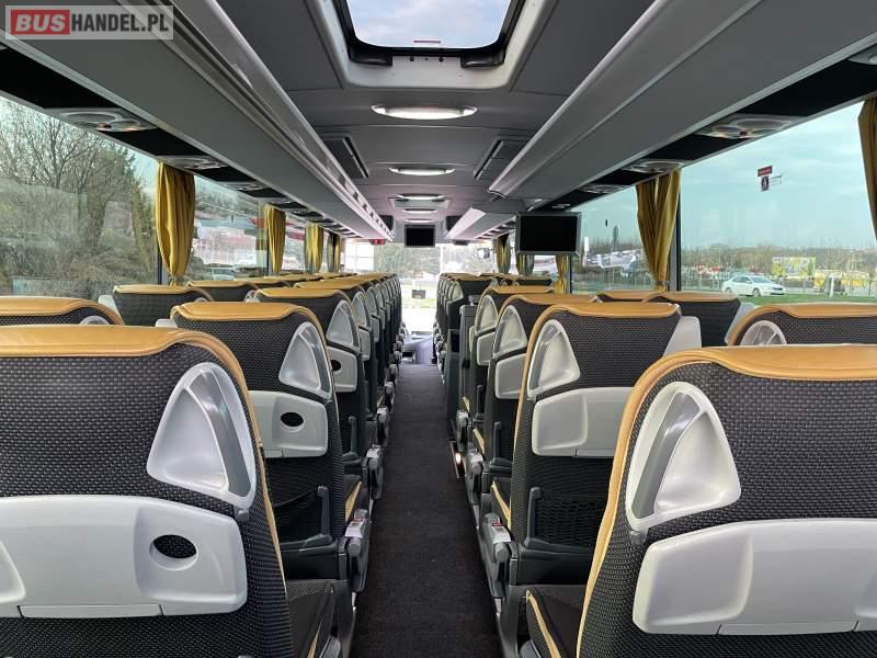 Wyposażenie: video, WC, lodówka, caffebar, kabina sypialna, fotele odchylane, oświetlenie indywidualne, nawiewy dyszowe, siateczki, ABS, ASR, tempomat, retarder, telefon, nawigacja, CD, podnóżki, stoliczki, mikrofon, klimatyzacja, radio, wyświetlacz matrix, sejf, regulacja wysokości nadwozia, centralny zamek, podwójne szyby boczne, wspomaganie kierownicy, elektryczne lusterka, fotele odchylane i rozsuwane, DVD, ogrzewanie stacjonarne, hak holowniczy, ESP