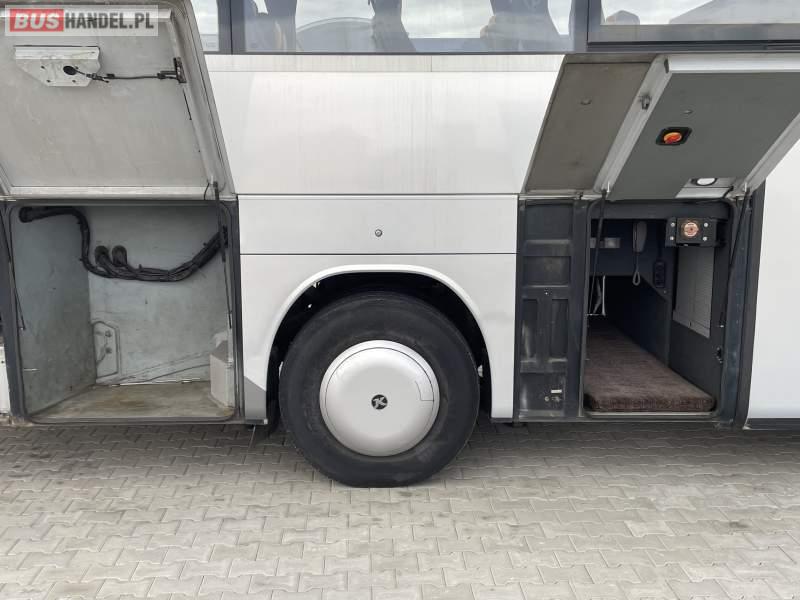 Wyposażenie: video, WC, lodówka, caffebar, kabina sypialna, fotele odchylane, oświetlenie indywidualne, nawiewy dyszowe, siateczki, ABS, ASR, tempomat, retarder, telefon, nawigacja, CD, podnóżki, stoliczki, mikrofon, klimatyzacja, radio, wyświetlacz matrix, sejf, regulacja wysokości nadwozia, centralny zamek, podwójne szyby boczne, wspomaganie kierownicy, elektryczne lusterka, fotele odchylane i rozsuwane, DVD, ogrzewanie stacjonarne, hak holowniczy, ESP