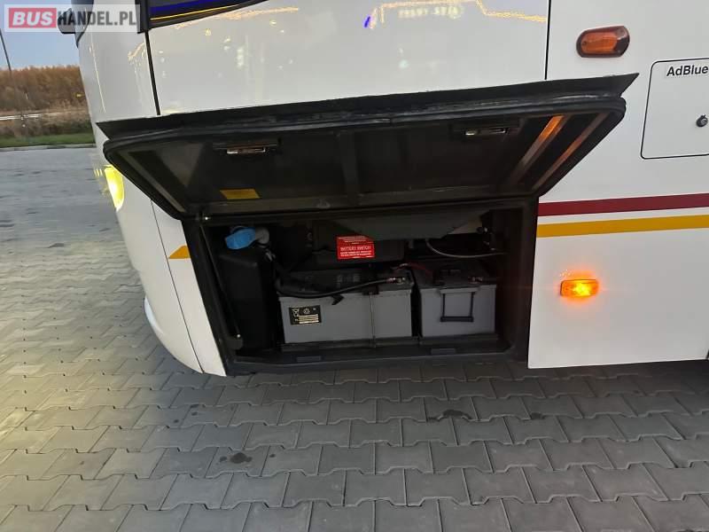 Wyposażenie: klimatyzacja, WC, lodówka, caffebar, kabina sypialna, oświetlenie indywidualne, nawiewy dyszowe, fotele odchylane, podnóżki, stoliczki, siateczki, ABS, ASR, tempomat, retarder, telefon, nawigacja, CD, mikrofon, radio, fotele odchylane i rozsuwane, wyświetlacz matrix, sejf, regulacja wysokości nadwozia, centralny zamek, podwójne szyby boczne, wspomaganie kierownicy, elektryczne lusterka, ogrzewanie stacjonarne, DVD, hak holowniczy, ESP