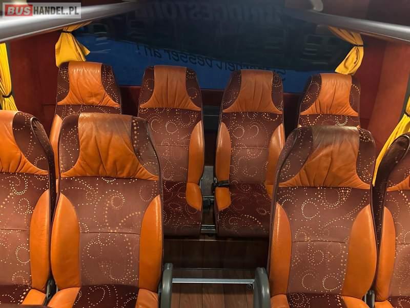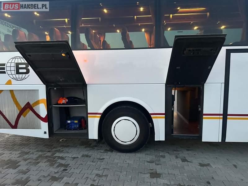 Wyposażenie: klimatyzacja, WC, lodówka, caffebar, kabina sypialna, oświetlenie indywidualne, nawiewy dyszowe, fotele odchylane, podnóżki, stoliczki, siateczki, ABS, ASR, tempomat, retarder, telefon, nawigacja, CD, mikrofon, radio, fotele odchylane i rozsuwane, wyświetlacz matrix, sejf, regulacja wysokości nadwozia, centralny zamek, podwójne szyby boczne, wspomaganie kierownicy, elektryczne lusterka, ogrzewanie stacjonarne, DVD, hak holowniczy, ESP