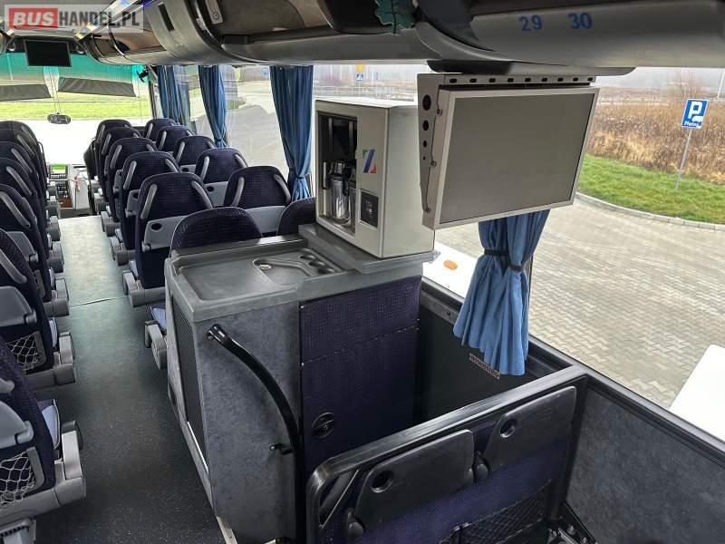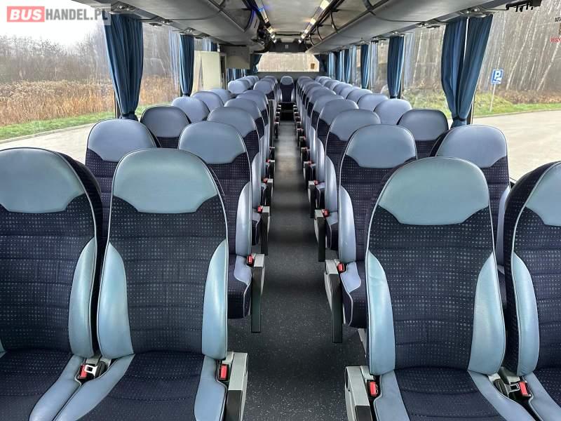 Wyposażenie: klimatyzacja, video, WC, lodówka, caffebar, kabina sypialna, oświetlenie indywidualne, nawiewy dyszowe, fotele odchylane, podnóżki, stoliczki, siateczki, ABS, ASR, tempomat, retarder, telefon, nawigacja, CD, mikrofon, radio, fotele odchylane i rozsuwane, wyświetlacz matrix, rampa dla inwalidów, sejf, regulacja wysokości nadwozia, centralny zamek, podwójne szyby boczne, wspomaganie kierownicy, elektryczne lusterka, ogrzewanie stacjonarne, DVD, hak holowniczy, ESP