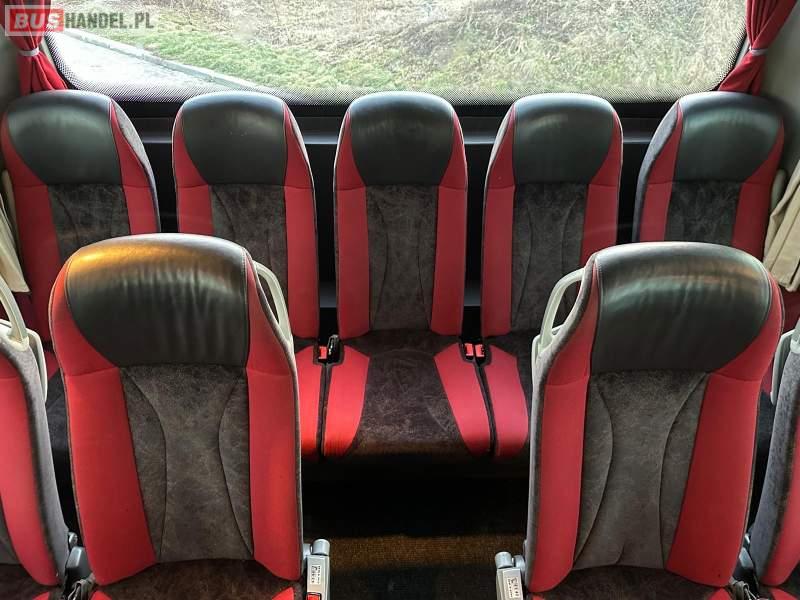 Wyposażenie: video, WC, lodówka, caffebar, kabina sypialna, fotele odchylane, oświetlenie indywidualne, nawiewy dyszowe, siateczki, ABS, ASR, tempomat, retarder, telefon, nawigacja, CD, podnóżki, stoliczki, mikrofon, klimatyzacja, radio, wyświetlacz matrix, sejf, regulacja wysokości nadwozia, centralny zamek, podwójne szyby boczne, wspomaganie kierownicy, elektryczne lusterka, fotele odchylane i rozsuwane, DVD, ogrzewanie stacjonarne, hak holowniczy, ESP