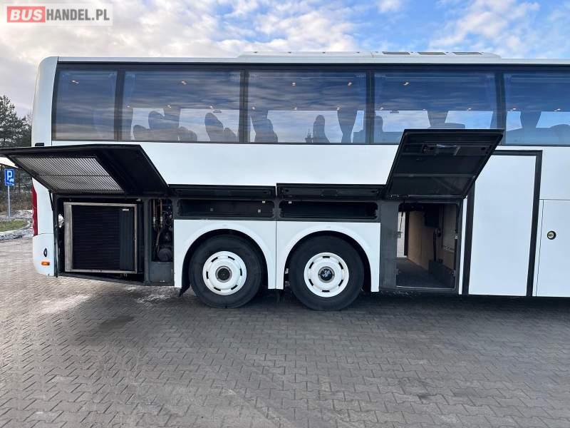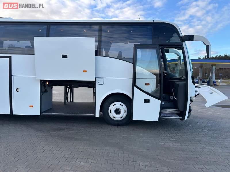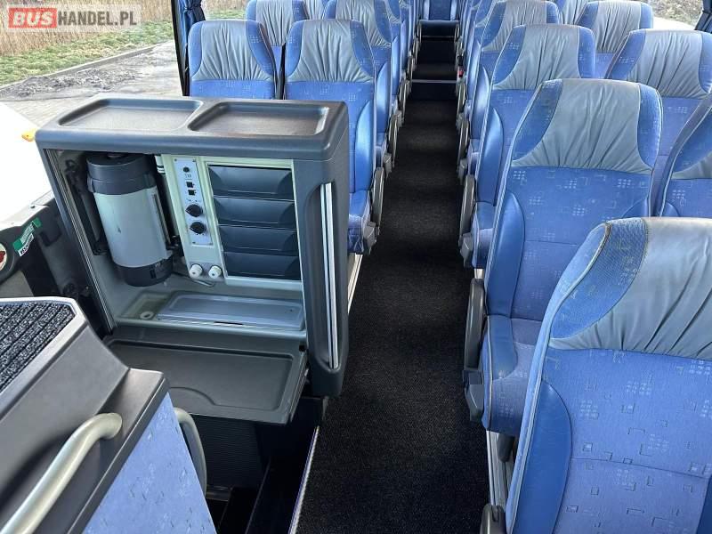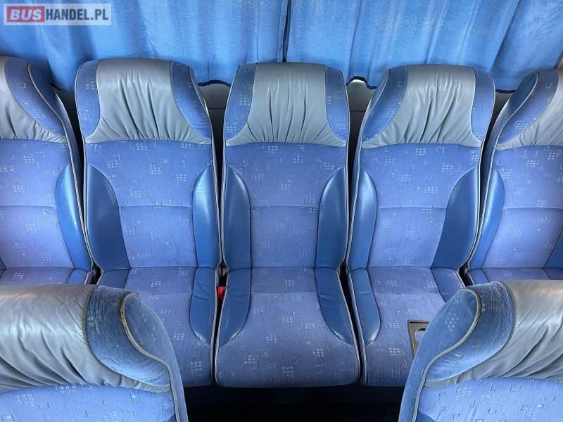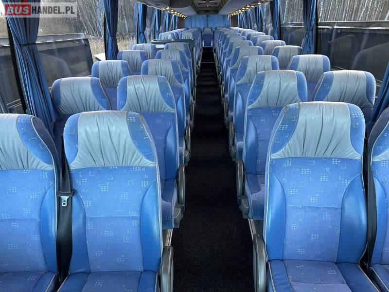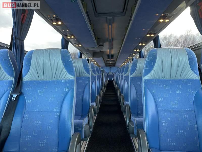Wyposażenie: klimatyzacja, video, WC, lodówka, caffebar, kabina sypialna, oświetlenie indywidualne, nawiewy dyszowe, fotele odchylane, podnóżki, stoliczki, siateczki, ABS, ASR, tempomat, retarder, telefon, nawigacja, CD, mikrofon, radio, fotele odchylane i rozsuwane, wyświetlacz matrix, sejf, regulacja wysokości nadwozia, centralny zamek, podwójne szyby boczne, wspomaganie kierownicy, aluminiowe felgi, elektryczne lusterka, ogrzewanie stacjonarne, DVD, hak holowniczy, ESP