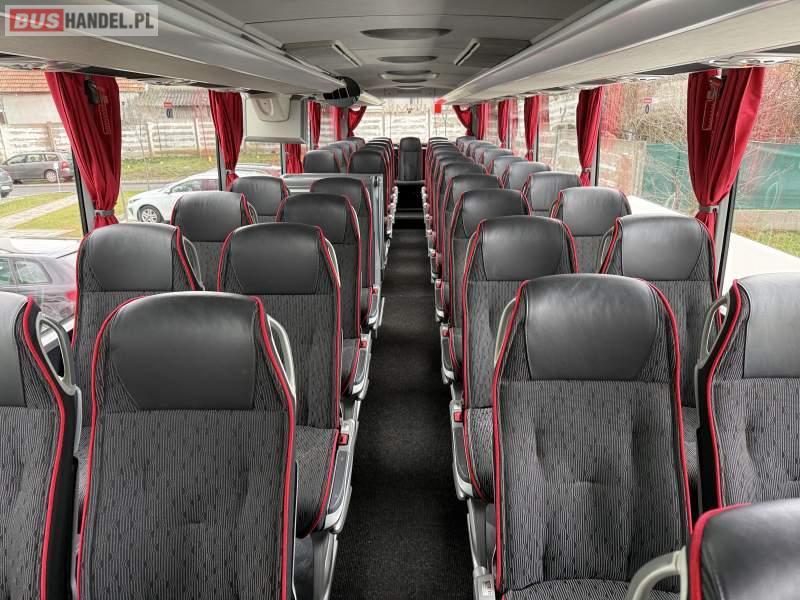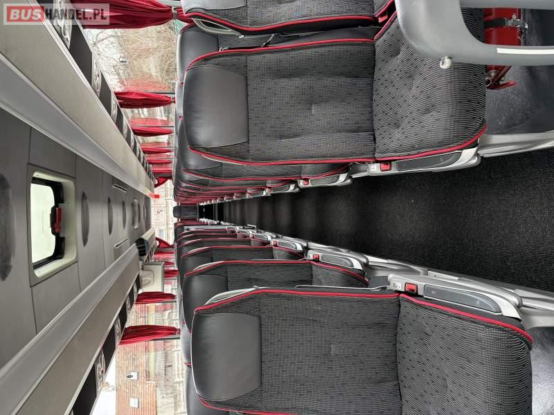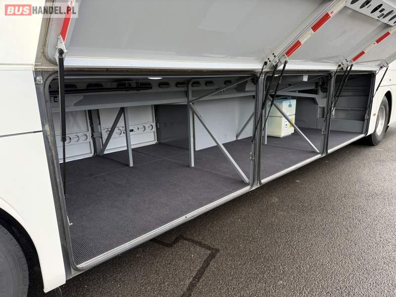 Wyposażenie: klimatyzacja, video, WC, lodówka, caffebar, kabina sypialna, oświetlenie indywidualne, nawiewy dyszowe, fotele odchylane, podnóżki, stoliczki, siateczki, ABS, ASR, tempomat, retarder, telefon, nawigacja, CD, mikrofon, fotele odchylane i rozsuwane, wyświetlacz matrix, rampa dla inwalidów, sejf, regulacja wysokości nadwozia, centralny zamek, podwójne szyby boczne, wspomaganie kierownicy, aluminiowe felgi, elektryczne lusterka, ogrzewanie stacjonarne, DVD, hak holowniczy, ESP